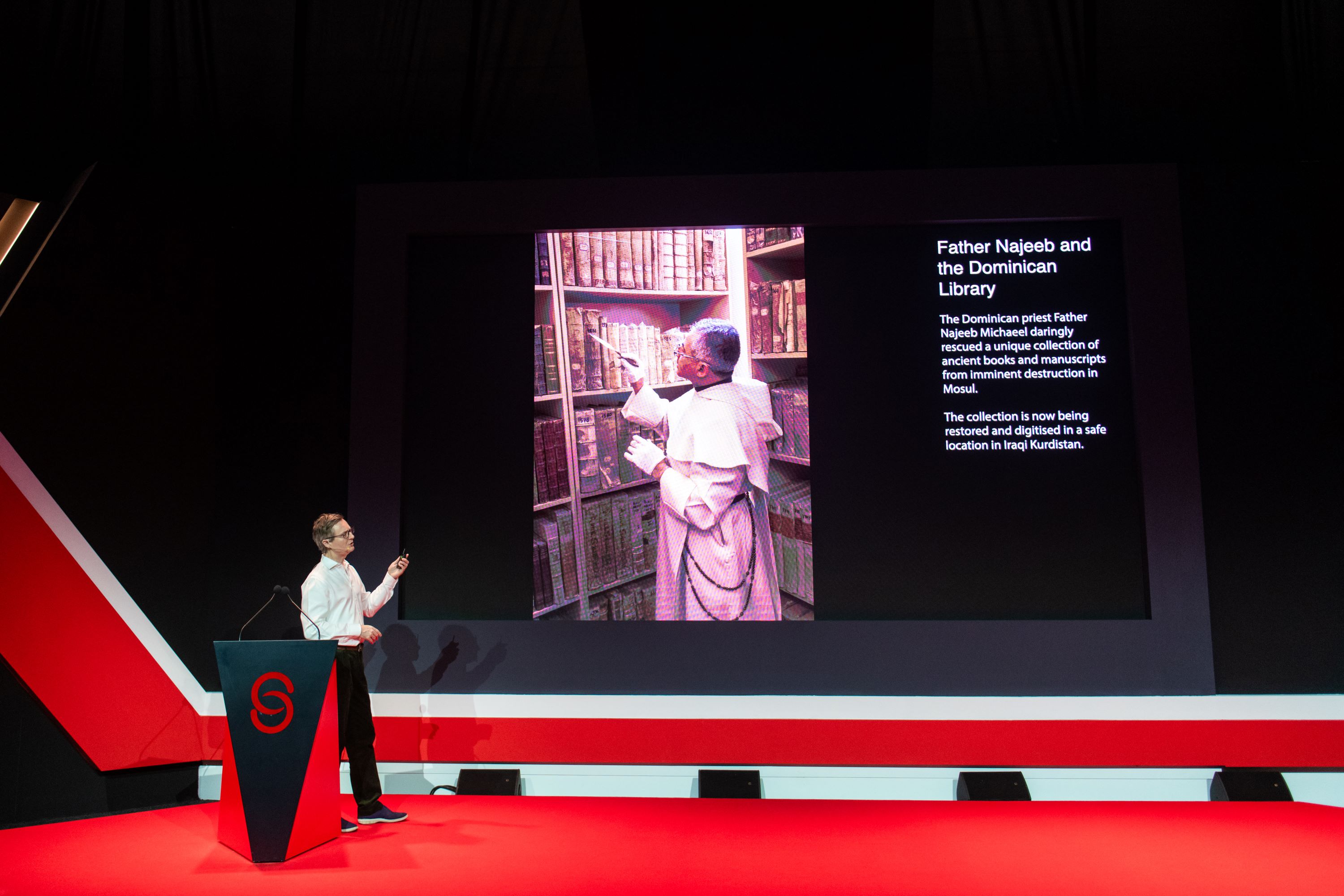 ثم أثرى قوله بما قدمه من مقارنات بين صور قديمة من القرن الماضي والوقت الحاضر لمواقع في العراق، داخل مدينتي " أربيل والعمادية "، والقلاع المبنية فوق الجبال والمرتفعات، والصروح الدينية والأقبية المتواجدة تحتها، والمقابر المخصصة للأزيديين، إلى جانب مدينة القوش، بالإضافة إلى مكتبة الدومينيكان التي تتضمن كتباً ومخطوطات قديمة ونادرة، ومئذنة مسجد النوري، الذي تدمر في عام 2017، ومسجد النبي يونس في نينوى الذي تدمر في عام 2014.