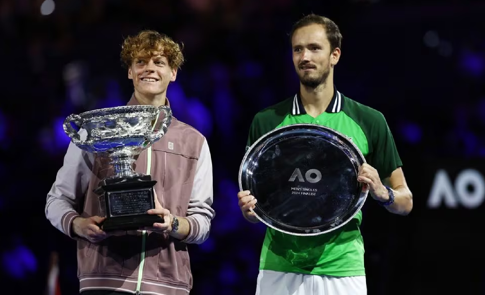 وعدل سينر تأخره بمجموعتين ليهزم ميدفيديف 3-6 و3-6 و6-4 و6-4 و6-3 ويصبح أول بطل في ملبورن منذ عقد من الزمن لا يُدعى نوفاك ديوكوفيتش أو رافائيل نادال أو روجر فيدرر في أول مواجهة على اللقب منذ 2005. عدم عرض أي من "الثلاثة الكبار".