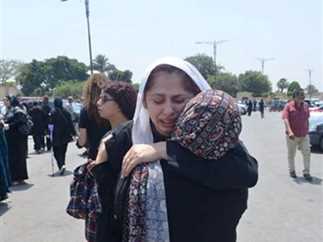 انهيار الفنانة ريم أحمد أثناء جنازة والدتها فاتن الراعي