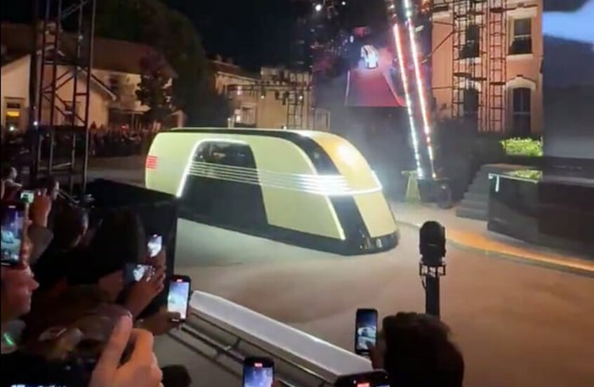 ويظهر الفيديو المركبة ذات التصميم المستقبلي تنزلق على المسرح بهدوء، مطلية باللون الأصفر اللامع وتتميز بأبواب جناحية مستوحاة من أفلام الخيال العلمي، ما أثار دهشة الحضور.